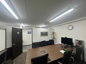 弊所のビルは少々古く、古い蛍光灯が使われていましたが、共用部も含めて全部がこのたびLEDに置き換えられ、弊所内も新しい照明になりました。
